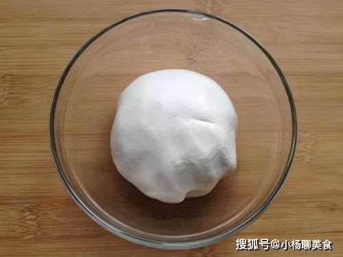 第一步:抓一大把糯米粉裝入盆中,往裏注入適量開水,邊用筷子將其攪成面絮狀,之後然後上手將它揉成一塊光滑柔軟的麵團。