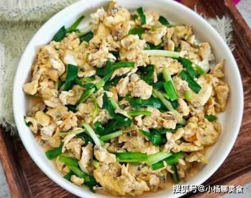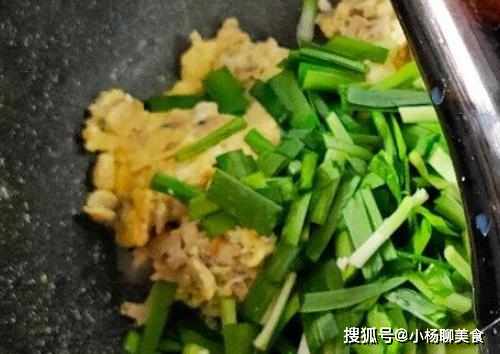 第二步:架鍋熱油,將剛才拌好的雞蛋液倒入鍋中,待其凝固之後翻炒片刻,然後加入切好的韭菜段,倒入適量生抽,炒至韭菜變軟便可出鍋裝盤享用了。