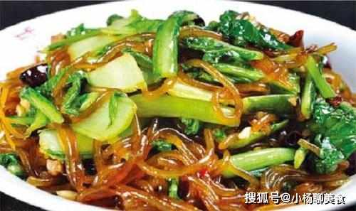3.另架鍋燒油,下入生薑、蔥花和幹辣椒進行爆香,接著下入小白菜炒勻,然後加入適量生抽翻炒一會,緊接著放入剛泡好的粉條,再繼續炒制片刻,最後放入適量食鹽炒勻便能出鍋裝盤啦。< /p>