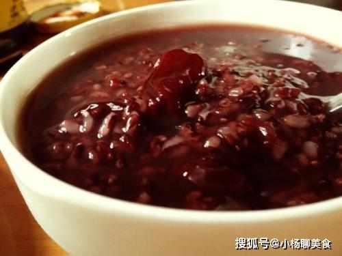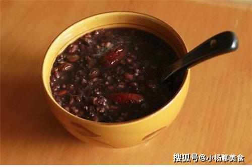 第二步:將浸泡好的黑米和黑豆連同其浸泡的水都倒入到鍋中,再往裏注入足量的清水,將它們熬成粥,煮至軟爛後便加入黑芝麻,攪勻,這時紅棗去掉核切成小塊,也一起丟到鍋裏,等到紅棗也煮爛了之後,放入適量紅糖煮化就可關火盛出來喝啦。
