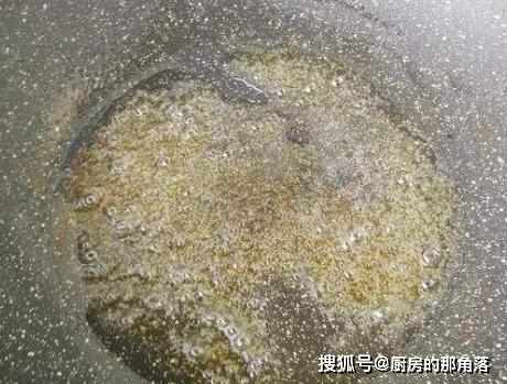 第三步,即可將其撈出來,投放入事先準備好的氷水中,降下溫,然後將炒鍋準備出來,置於火上,不用加水或者是加油,直接放入白糖,中小火開始炒糖色;