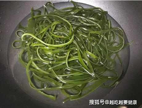 2、海帶泡軟後,需要下鍋煮一會,將海帶煮熟後才可享用,注意焯過水後需要放入冷水中過一遍,一冷一熱會使得海帶變得更為脆爽;