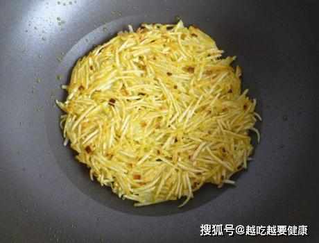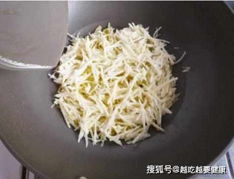 2、小編提醒,因為洋芋的澱粉比較多,所以將其切成絲之後,需要用清水將其中的澱粉給洗乾淨,這樣會更加易於操作,口感也會更好,煎土豆絲餅的時候,油放的要稍微多一點,用上這一招,土豆餅不加雞蛋也會香脆,另外煎的時候不要著急,待定型後再翻動,否則容易碎,這份土豆餅的做法很簡單,10分鐘就能輕鬆搞定早餐,香酥又脆的土豆絲餅,比雞蛋灌餅還要香。