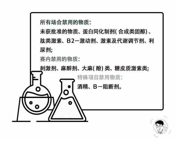 據相關資料統計,興奮劑主要被分為場合禁用、比賽禁用等幾種類型,一共有12種。