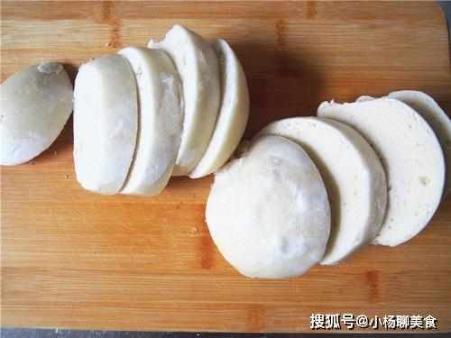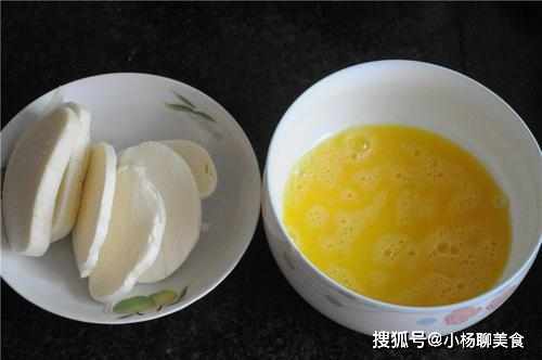 第一步:首先將買來的饅頭切成厚片狀,切的時候別太厚,也不能太薄,然後將每塊饅頭片都稍微沾點水。