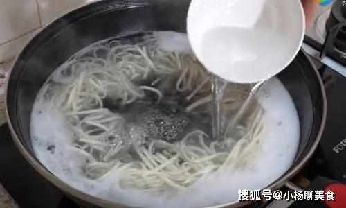 當面下入鍋中時,我們得用筷子將其輕輕地攪動,這是為了讓麵條散開來以免黏連,同時也能够受熱均勻,然後咱在往裏添入食鹽,一是增添底味,二是能新增麵條的筋性,讓麵條吃起來更加的爽滑勁道。