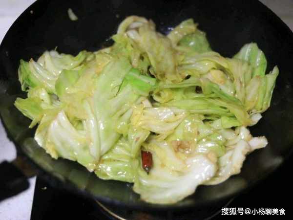 4、炒出辣味後將包菜放入鍋中,再撒上適量食鹽大火快速翻炒均勻,把食鹽炒化後加入一勺蚝油翻炒均勻,接著再加入一勺陳醋繼續翻炒均勻,然後再淋上適量蒸魚豉油快速翻炒均勻就可以關火了。最後將包菜裝入幹鍋,架在爐子上面點上火明一邊燒一邊吃,火燒完,菜也就吃完了。