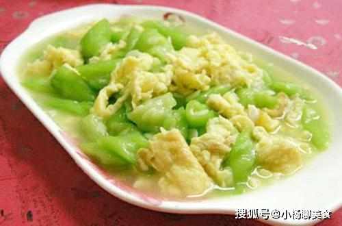 第三步:架起炒鍋燒幹裡面的水分,添油燒熱,接著下入蛋液,中火將它炒製定型,盛出備用;往鍋裏加入一些猪油,燒熱後吸入蒜末爆香,接著倒入絲瓜、雞蛋和少許熱水,中火將其炒勻後便添入適量食鹽調味,最後撒上蔥花,翻炒均勻後即可出鍋裝盤享用。