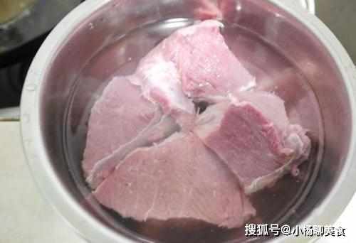 1.把買回來的牛肉用水沖洗乾淨,起鍋倒水,大火將它燒開,接著把牛肉丟進用水焯一遍,把裡面的血水都逼出來。(鹵牛肉最為重要的就是食材的本身,其中牛腱子肉的筋比較多,吃起來口感會更好一些,所以用它來做鹵牛肉是再適合不過的了)