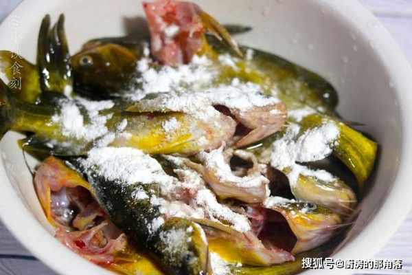 1、買黃丫頭的時候,老闆一般會幫你處理好,拿回家用自來水沖洗乾淨,放入到一個大碗中,加入鹽和胡椒粉還有澱粉醃制一下。