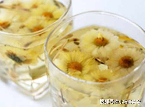 3·開水中加點菊花,用開水泡菊花有點味苦,這裡建議大家加點糖之類的,而且菊花中含有少量硒元素,對五官非常好,如下圖所示: