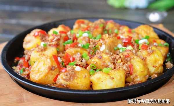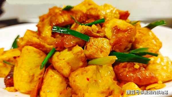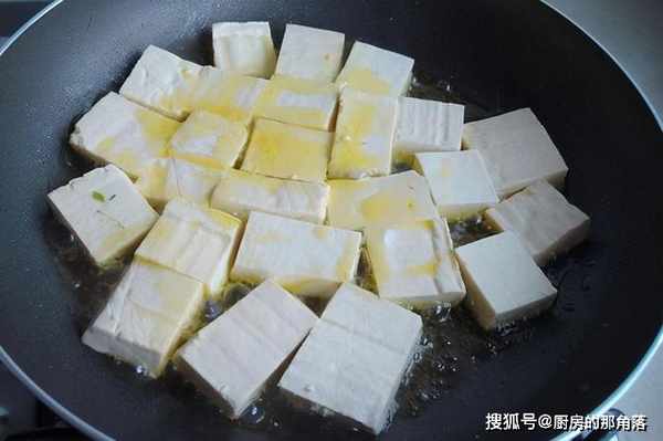 2.雞蛋豆腐一定要熱鍋凉油煎制,這樣在煎制的時候,雞蛋既不會粘鍋,也不會糊鍋。