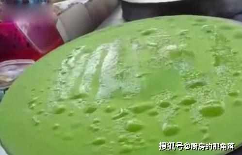 可能會有人認為,為啥她家的麵糊是綠色的,難道加了什麼顏色添加劑嗎?這個大家大可放心,並沒有,聽欧巴桑自己講述的情况,說是