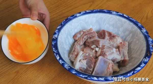 我足足買了40塊錢排骨,做這道菜需要的就是大氣。這排骨也的切的非常大氣,每塊都切的個頭比較大。接著就是清水洗掉排骨內血水和髒東西了,把水分控幹後,往碗裏放小雞蛋,攪拌成雞蛋液。
