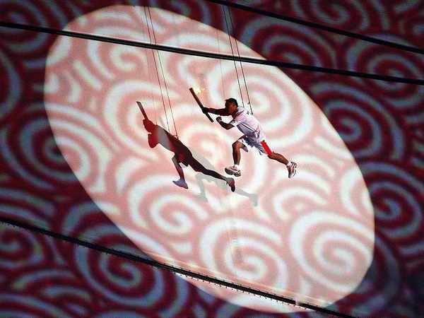 △北京奧運會開幕式的點火環節,"體操王子"李寧的點火瞬間