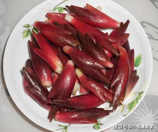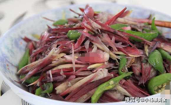這個它就是陽荷,陽荷主要呈現紫紅色,看起來非常有食欲,是一種營養價值很高的野生蔬菜,尤其是膳食纖維含量比較高,常吃可加速新陳代謝,促進腸胃蠕動,排出體內油脂,减少脂肪和熱量的堆積,而且常吃陽荷有助活血調經,對緩解月經不調有一定的作用。