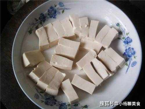 步驟二:然後將豆腐切成塊,並且裝入碗中,然後在碗中加上水,並且在水中加上鹽放在一旁。接著再次清洗上一些薑,並且將它切成片或者絲,最後再洗上一些香葱或者香菜,切好放在一旁備用。
