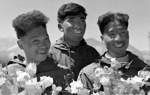 △1960年,中國首登珠峰成功的(右起)王富洲、貢布(藏)和屈銀華