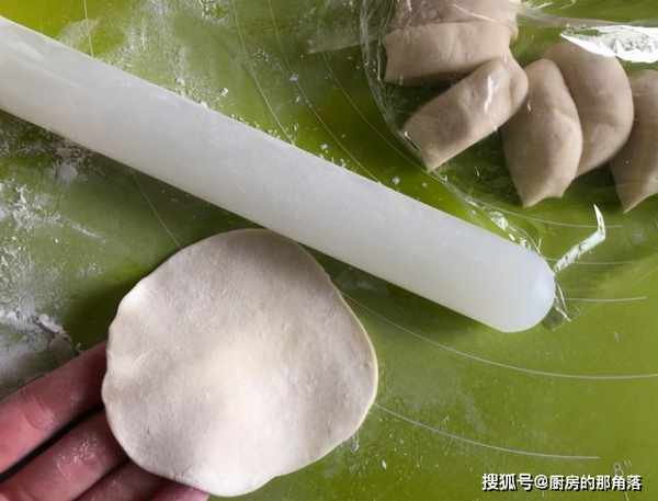第四步,加一點點五香粉,翻炒均勻,關火,加入蔥花拌好,喜歡芝麻也可以搭配點,放凉用,麵團發酵好,揉搓排氣,分成小面劑子,分別擀成包子皮;