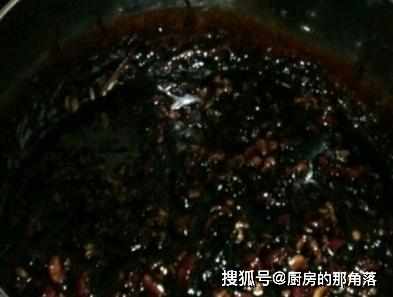 步驟四:先後倒入事先準備好的枸杞,核桃仁,紅棗和黑芝麻(每加入一個食材都要攪拌均勻才能再加入下一個食材,黑芝麻要最後放),放入黑芝麻後關火攪拌均勻。
