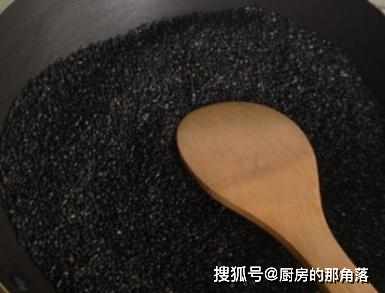 步驟二:用鍋小火幹炒黑芝麻和核桃仁,炒至食材散發出香味,即可撈出備用。