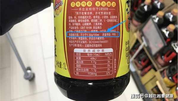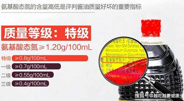 很多人買醬油時,會發現有些大瓶醬油的價格很便宜,而有些小瓶的反而很貴。都說一分價錢一分貨,那麼這個到底貴在什麼地方,品質好在哪裡?其實主要有2個因素,第1個是添加劑的含量,有些添加劑含量高,有些添加劑含量很低。第2個因素是氨基酸態氮含量等級(如上圖所示)。