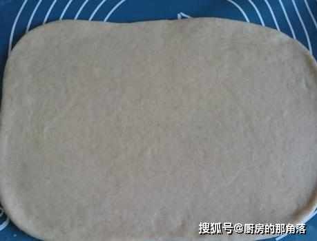 第五步,揉勻排氣,再將其用擀麵杖擀成長方形面片,在上面撒上適量的鹽,再均勻的塗抹葱油;