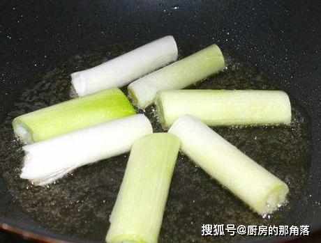 第三步,大葱取葱白,切成蔥花,沙拉油倒在炒鍋中,燒熱後,放入蔥花,爆成葱油;