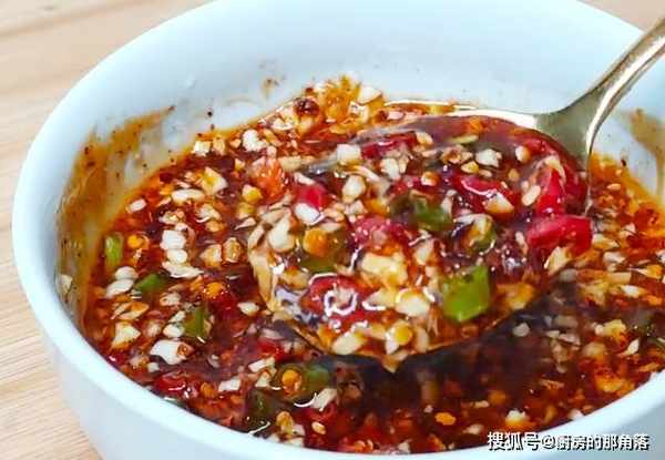 所需食材:大蒜八粒,生抽一勺,1勺香醋,香油,辣椒油,