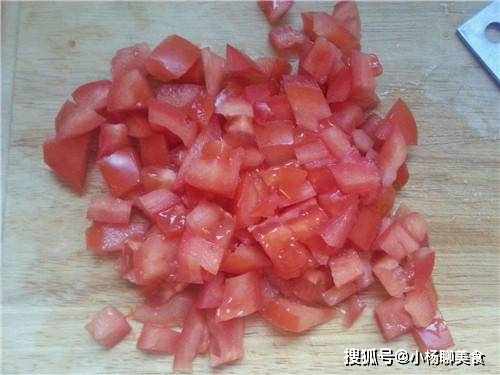 步驟二:接著將蕃茄切好,將蕃茄的皮用開水燙開,直接放在碗中就行,等到1-2分鐘後就可以將蕃茄拿出,並且用手將皮撕開。然後切成小丁,或者小塊,擱在一旁備用。接著就開始正式的炒菜。