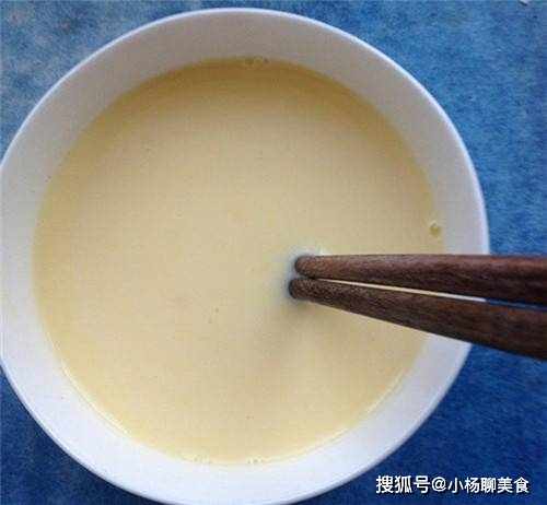 步驟一:先拿出雞蛋,並且將雞蛋敲破在碗中,接著用筷子打雞蛋,記住打雞蛋的時候最好將筷子直立的攪打雞蛋,不是以往傾斜的攪打。接著在打散的雞蛋中加上200ml的牛奶,並且在加上一點點的綿白糖,然後用筷子順時間方向攪拌好。