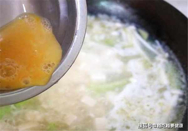 等湯汁再次煮開之後就可以淋入我們調散的雞蛋,最後加入適量的鹽和香油,攪拌均勻之後就可以關火出鍋了。