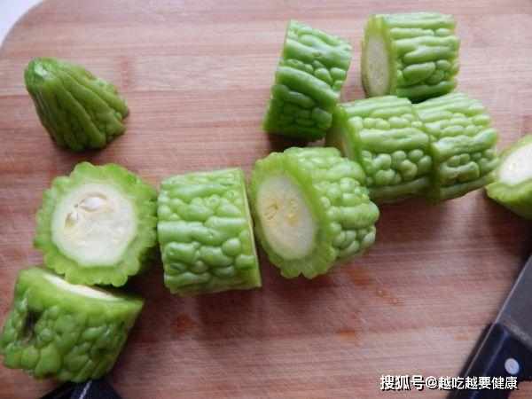 2.新鮮的苦瓜兩根將其去掉頭部和尾部,切成三釐米的長段。然後用勺子挖出裡面的內瓤。裡面的白色部位也要記得挖乾淨哦!