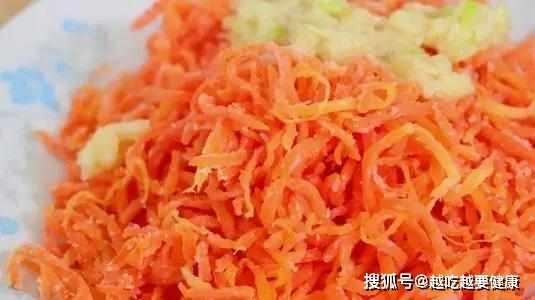 1.準備新鮮的胡蘿蔔兩根,我們將其洗淨。不喜歡吃外皮的也可以用削皮刀,把它的外皮去除。然後用擦絲器擦成細絲放入碗中備用。