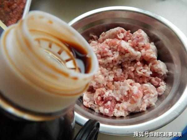 1.6塊錢的五花肉,我們將其剁成肉泥。然後放入一個大盆中。在裡面加入葱薑水快速的攪勻,然後再放點精鹽、生抽、醬油以及十三香和食用油。快速的攪勻放置一旁醃制五分鐘。
