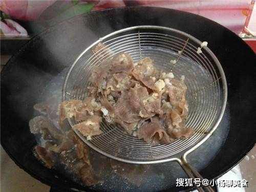 步驟一:將肥牛先解凍,並且在解凍後,就在鍋中燒上熱水,在水沸騰後就拿起鹽,撒入適量,並且在加上一點點的白酒,攪拌一下後倒入肥牛。肥牛入鍋後幾十秒就可以撈出,不需要太長時間,撈出後的肥牛瀝幹水分就可以裝入碗中。