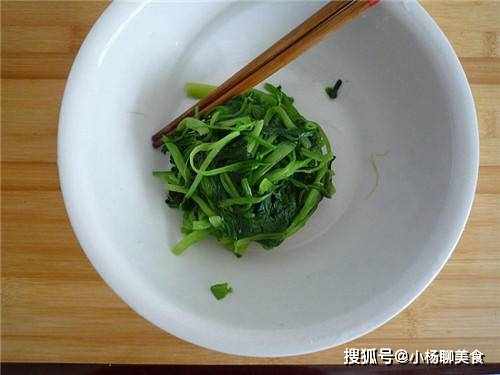 步驟一:拿出菠菜,可以將菠菜放在清水中,並且擠上檸檬汁泡一會,也可以直接將菠菜清洗乾淨之後就用刀對半切開。接著在鍋中燒上水,然後將菠菜放在鍋中焯熟,接著將菠菜倒入涼白開中泡一小會,最後將它的粉絲弄幹後放在碗中備用。