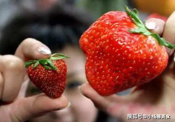第三種:果實太大的草莓。大家在買草莓的時候,相信都想著要挑大一點的,這個想法是沒錯的,但是也要切合實際,不能挑選太大的。因為市場上過於大的草莓,很多都是噴曬了膨大劑,如果你一心只挑大的草莓,很有可能就入坑了,買到不好吃不健康的草莓了。