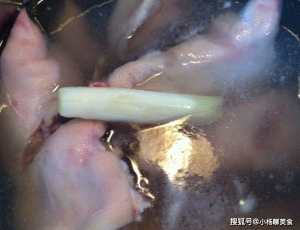 猪蹄一定要焯水,不然猪蹄會有一個腥味,非常的難聞難吃。焯水的時候,水中需要放入料酒,少量白酒,以及生薑,食鹽。焯水2分鐘迪,就可以把猪蹄撈出,用清水沖洗乾淨。