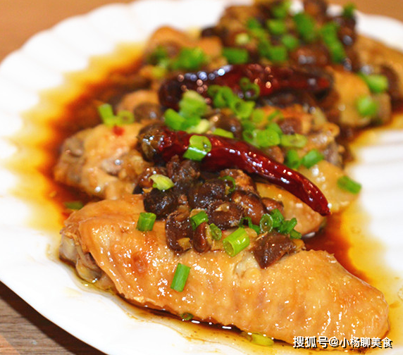 以上步驟都做好了,就可以讓雞翅醃制15分鐘,時間不能太短,因為會導致雞翅不入味。雞翅醃制好後,往上面撒一層豆豉,淋一層食物油。