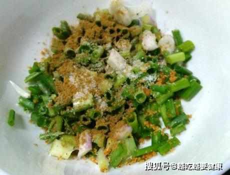 第三步,控幹其中的水分,將香葱切成蔥花,放入在一個碗中,加上食鹽和五香粉,然後炒鍋中添上適量的食用油,燒熱後澆在食鹽和五香粉上面,攪拌均勻,即成五香葱油;