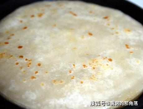 3、烙餅的過程中,記得要待底部定型後再翻面,保證餅的完整性,並且可以用鍋鏟多拍打餅胚,這樣也可以幫助起層,兩面分別煎至個人喜歡的程度就可以出鍋了。