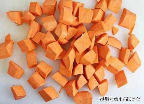 第一步:紅薯洗淨,將皮削去,接著切成塊狀,可以稍微切大塊點,因為紅薯耐煮,切好之後將其放入籃筐中多沖洗幾遍,這樣能沖掉多餘的澱粉,使得煮出來的紅薯塊更鮮亮。