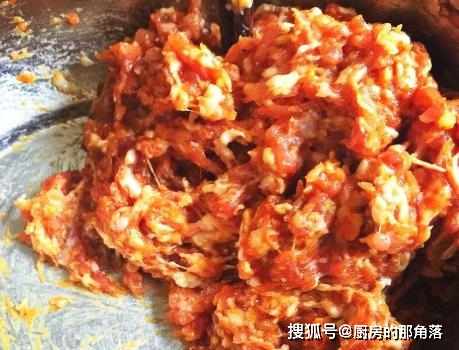 第二步,一塊猪肉用清水抓洗乾淨後,控幹其中的水分,放在案板上,剁成細細的末,放入一個容器中,加上料酒、鹽、蚝油、生抽、胡椒粉和花椒粉,用筷子將其充分攪拌均勻;