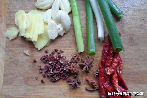 2、準備好上面這些調料,接下來咱們開始上火製作,首先鍋中加入800克的花生油,先將葱薑,八角幹辣椒,下鍋小火炒幹炒香,過程大概三分鐘,然後將其撈出來備用。