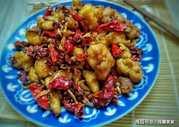 再把雞肉瀝幹水分備用,再起一鍋鍋裏倒入適量的食用油,開中火把油燒熱,然後把雞肉倒下去翻炒至金黃的就行,接著撈起來,鍋裏剩下的油可用來給幹辣椒和幹麻椒爆香。