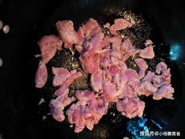 想要炒出優秀的肉類菜品,油溫的把控真的是十分重要,太早下鍋就會炒太久,肉類就會變得很老很柴,太晚下鍋瞬間的高溫又容易將猪肉給燒焦,所以說六成左右的油溫是最時候的,肉片下鍋快炒,可以極大的保持其自身的鮮嫩。