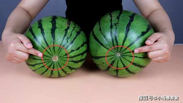 然後我們還可以看看瓜的頂部,與瓜蒂連接的那個地方,觀察它的形狀大小,小的話就說明瓜皮會比較薄一些,這種瓜吃起來會比較爽一點,而那種臍比較大的瓜,皮厚壓稱口感還不好,買到這樣的瓜可就有點小虧了呢。