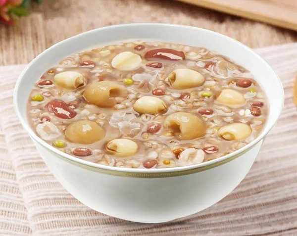 做法:將蓮子淘洗乾淨,去芯;青梅切成細絲;核桃仁用溫水浸泡後,剝去外衣,切碎;蜜棗去核,切成細丁。糯米加水煮成稀粥,再加入其他原料,以白糖調味即可。