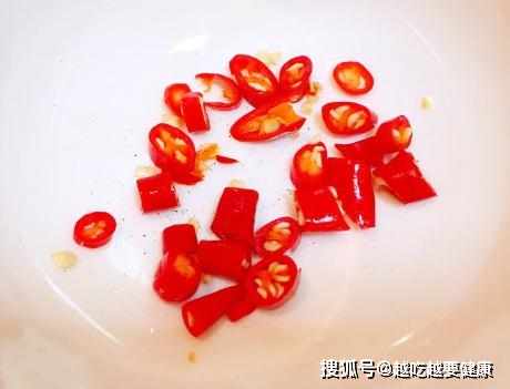 第三步,將小米辣切成小碎丁,準備好所有的食材便可開始炒菜,炒鍋中添上少許的食用油,凉油放入蒜蓉,小火將其中的香味煸炒出;